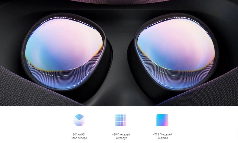Разрешение экрана | 1832 x 1920 на каждый глаз, 20 PPD | |