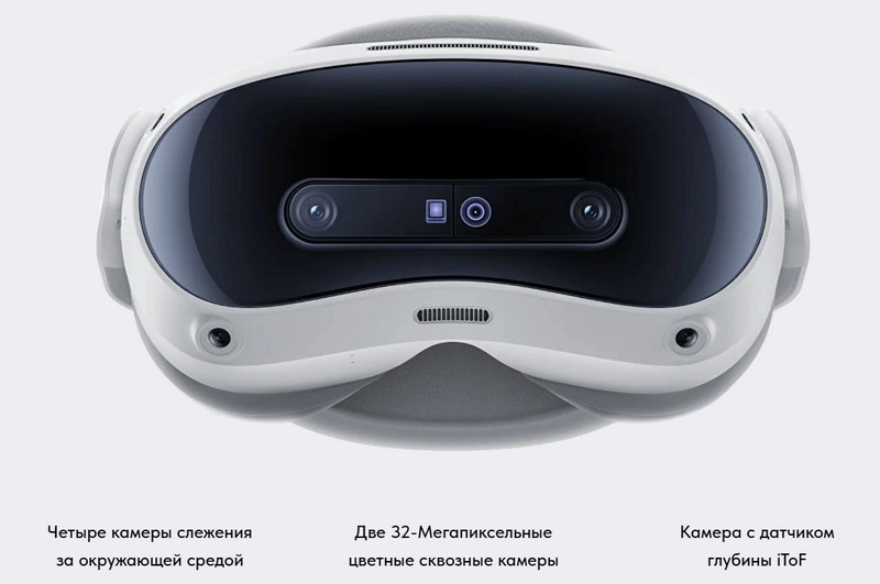 Смешанная реальность в Pico 4 Ultra становится возможной благодаря комплексу из трех видов высокоточных датчиков. Четыре камеры постоянно отслеживают окружающее пространство, две цветные камеры с разрешением 32 МП обеспечивают качественный сквозной обзор реального мира, а датчик глубины iToF позволяет точно определять расстояние до объектов. Совокупность этих технологий создает бесшовное наложение виртуальных элементов на реальное окружение.