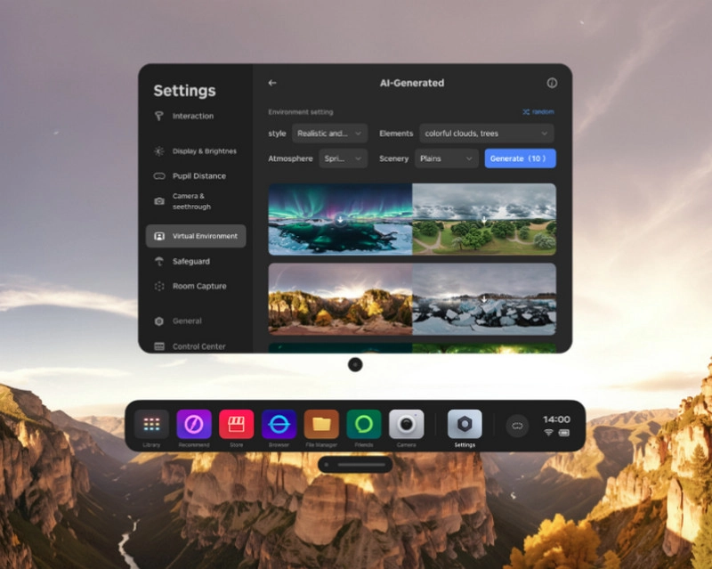 С помощью встроенного ИИ-инструмента вы можете создавать и настраивать собственные VR-среды, адаптируя их под свои задачи и предпочтения.