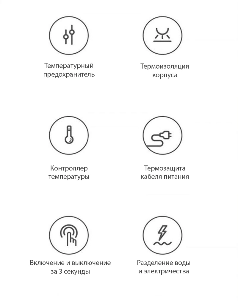 Для вашей безопасности в отпаривателе Mijia реализовано несколько степеней защиты. От перегрева защитит предохранитель и контроллер, теплоизолированный корпус не допустит ожогов, кабель с термоизоляцией и разделение воды с электричеством защищают от короткого замыкания.