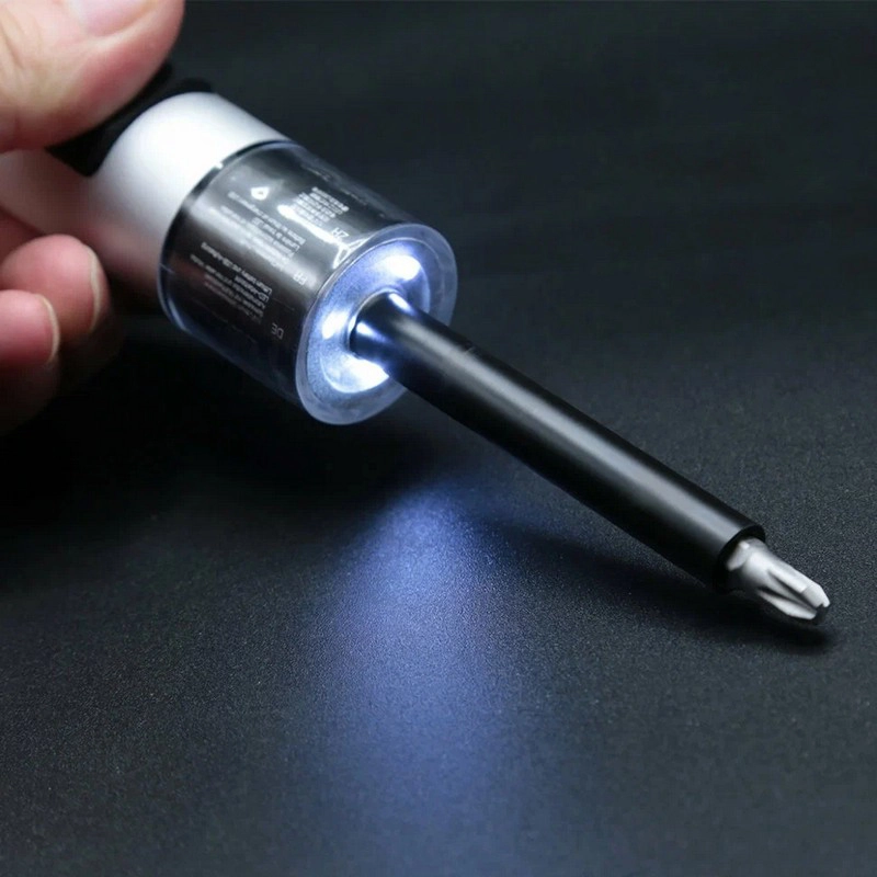 Три ярких светодиода подсвечивают область работы, использовать отвертку можно даже в полной темноте.