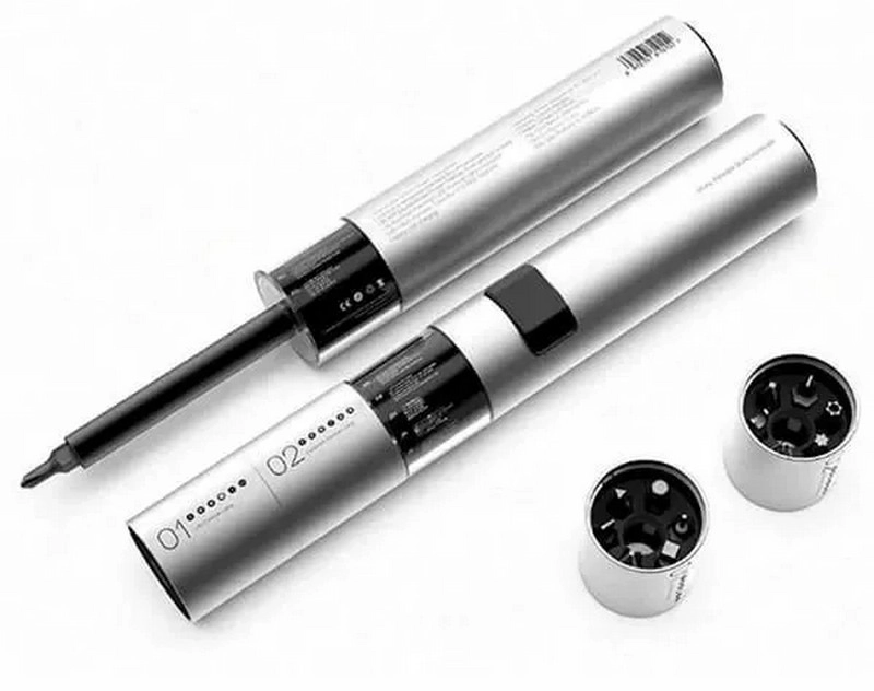 Отвертка WOWSTICK Lithium Screwdriver SD63 выполнена из анодированного алюминия, в комплекте поставляется специальная противоскользящая наклейка на рукоятку. Состоит корпус из 3 частей — самой отвертки и двух съемных отсеков для бит. В каждый отсек помещается 6 бит и можно вложить те, которые используются чаще всего.