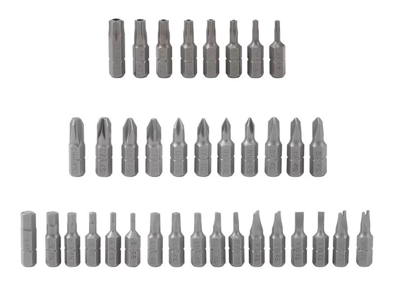 | Биты | PH0, PH1, PH2, PH3, H2, H2,5, H3, H4, H5, H6, SL3, SL4, SL5, SL6, T8H, T10H, T15H, T20H, T25H, T27H, T30H, PZ0, PZ1, PZ2, PZ3, S0, S1, S2, ▲2.0, ▲3.0, Y1, Y2, Y3, U6, U8 | |