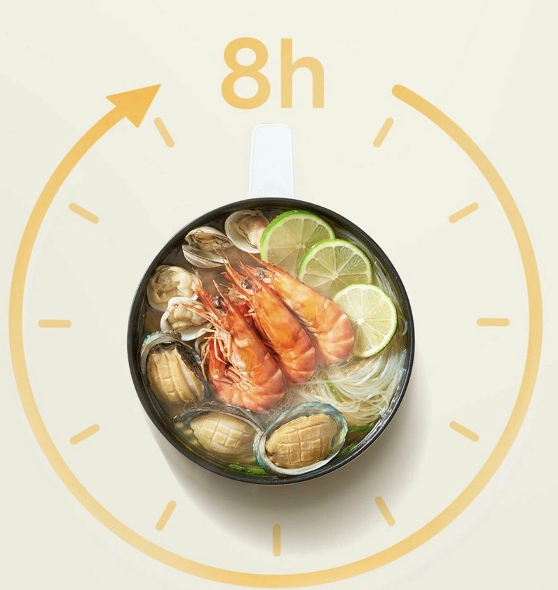 Пароварка автоматически выключается при перегреве, защищая от выкипания. А ещё она умеет сохранять тепло до 8 часов — ваши блюда останутся горячими, даже если вы не сможете подать их сразу.