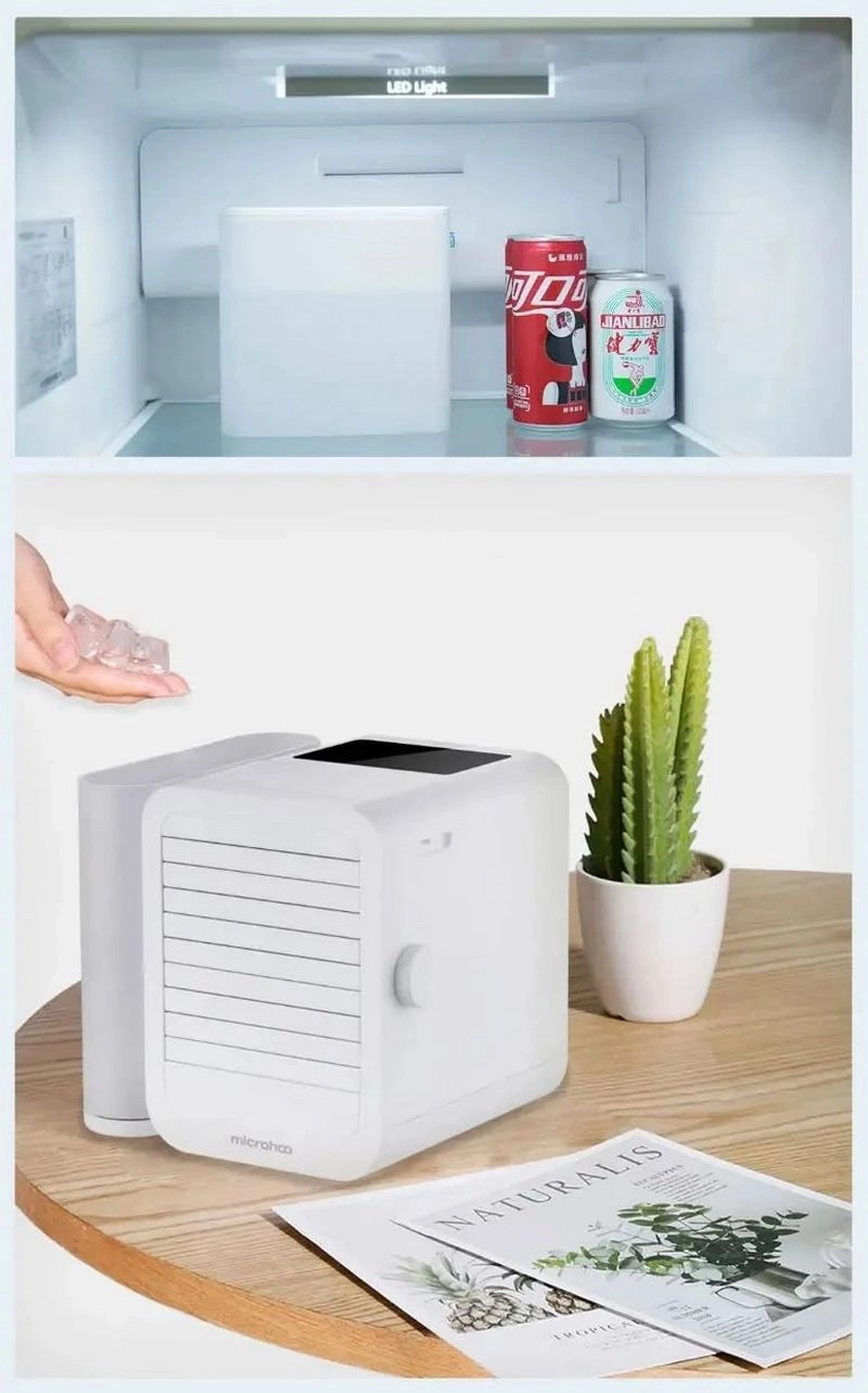 Microhoo Personal Air Cooler не нагревает воздух, не пересушивает его и практически не потребляет электричество. На максимальной мощности кондиционер расходует 6 Вт в час.