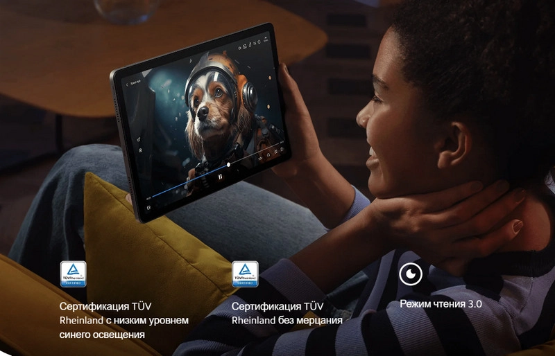 Дисплей прошел профессиональную сертификацию, которая подтверждает низкий уровень синего излучения для защиты глаз пользователя.