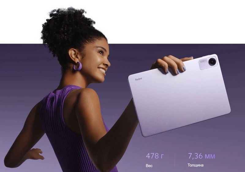 Redmi Pad SE вышел в металлическом корпусе, окрашенном в один из трех стильных цветов: лавандовый, мятный или серый.