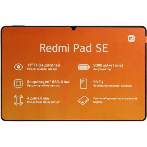 Планшет Redmi Pad SE — с большим 11-дюймовым дисплеем, Full HD + разрешением и частотой обновления 90 Гц. Большая батарея емкостью 8000 мАч обеспечивает до 21 часа работы. Планшет в стильном металлическом корпусе оснащен 4 динамиками для объемного звучания Dolby Atmos.