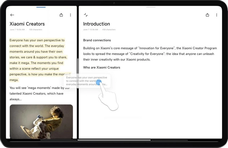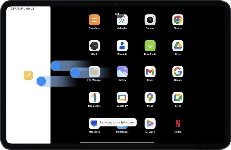 Проведите пальцами экрана для разделения его на две независимые рабочие зоны.