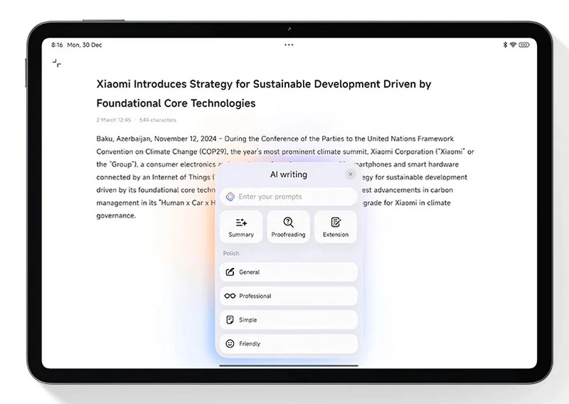 Xiaomi Pad 7 оснащен передовыми инструментами Xiaomi HyperAI, которые упрощают выполнение офисных задач. Планшет помогает искать информацию, создавать тексты и изображения, а также эффективно проводить онлайн-встречи. Интеллектуальные функции повышают продуктивность и делают работу удобнее.