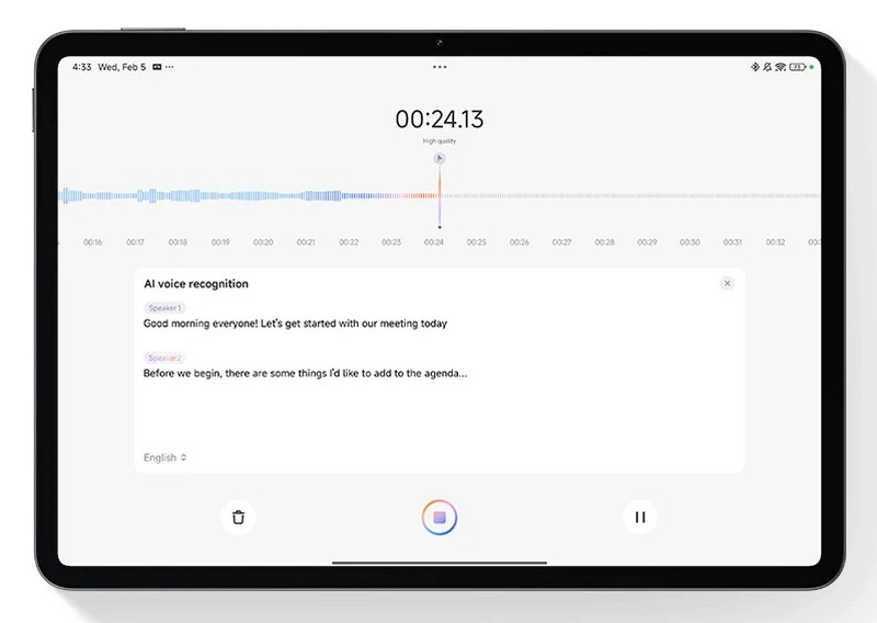 Интеллектуальная функция распознавания речи, основанная на облачных технологиях AI, автоматически переводит ваш голос в текст. Она также способна распознавать говорящего, создавать краткое изложение и выполнять переводы.
