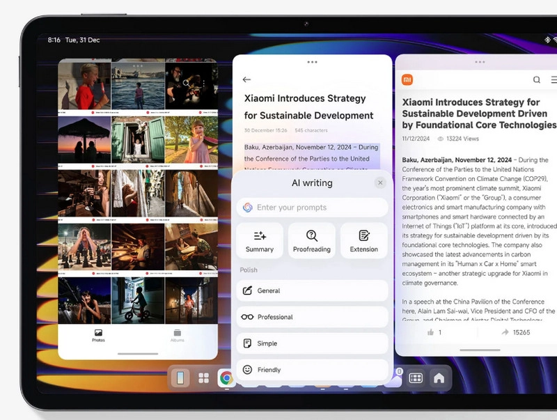 Серия планшетов Xiaomi Pad 7 предлагает интеграцию с интеллектуальным помощником Google Gemini, открывая новые горизонты для ваших идей. Общайтесь с Gemini, получайте мгновенный доступ к нему прямо поверх других приложений и обсуждайте вопросы в режиме реального времени. Создавайте впечатляющие изображения и используйте расширения Gemini для взаимодействия с привычными сервисами Google.