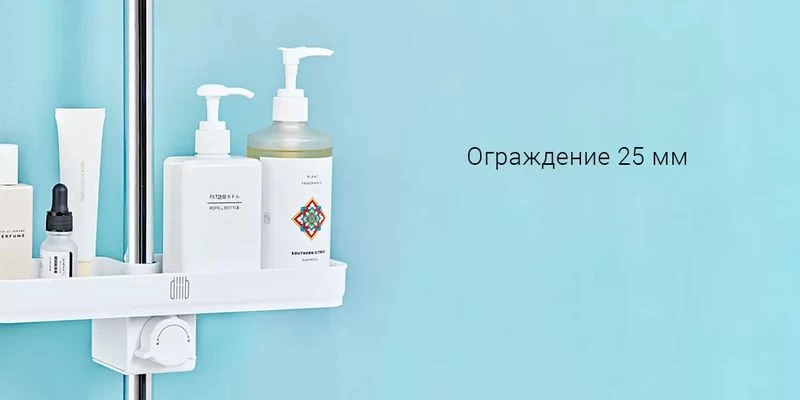 Полочка оснащена бортиками высотой 25 мм. Все предметы надежно фиксируются и защищены от падения.