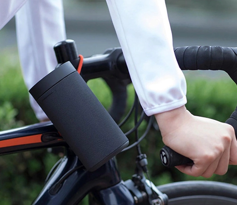 Портативная колонка Mi Outdoor Bluetooth Speaker (XMYX02JY) имеет длинную цилиндрическую форму с классическим черным окрасом. Внешняя часть динамика изготовлена из прочной мягкой резины, покрытой тканью по всему корпусу для усиления изящества устройства.