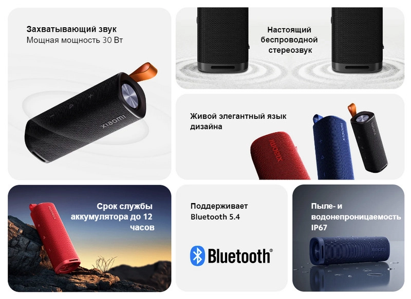 Портативная колонка Xiaomi Sound Outdoor S29D (MDZ-38-DB) 30W — это захватывающее 30-ваттное звучание, поддержка TWS для полноценного стереозвучания, полная влаго-пылезащита и срок службы аккумулятора до 12 часов. Дизайн колонки удостоен премии Red Dot Award: Product Design 2024.