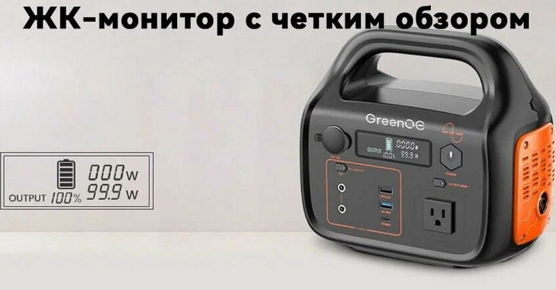 Станция оснащена четким ЖК-экраном, отображающим 100% точную информацию о текущей мощности, уровне заряда и других ключевых показателях.