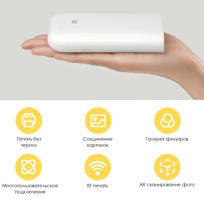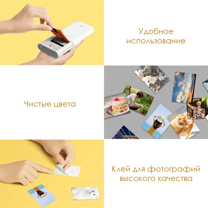 Xiaomi Mijia AR ZINK (XMKDDYJHT01) — карманный принтер, который всегда с вами. Работает по технологии полноцветной термальной печати. Печатайте небольшие карточки и собирайте большие фотографии, как пазлы.