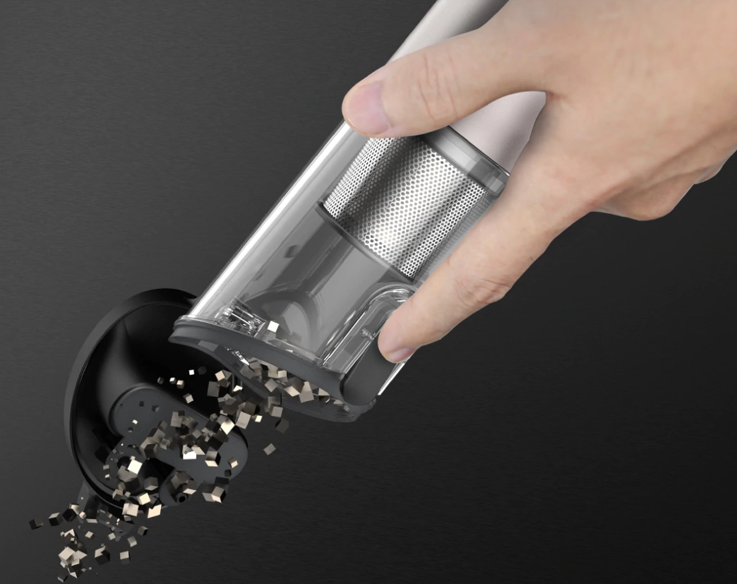 Пружинный контейнер для пыли может быстро высыпать грязь, при легком нажатии на соответствующую кнопку пылесоса.