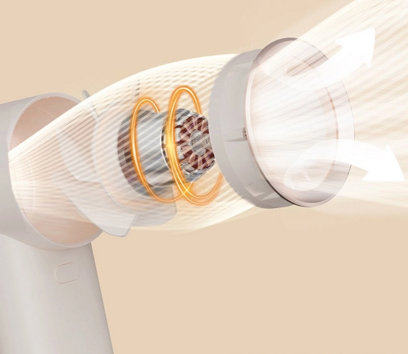 Сверхскоростной двигатель в сочетании со специальной конструкцией фена разгоняет воздушный поток до 4 м/с для быстрого охлаждения.