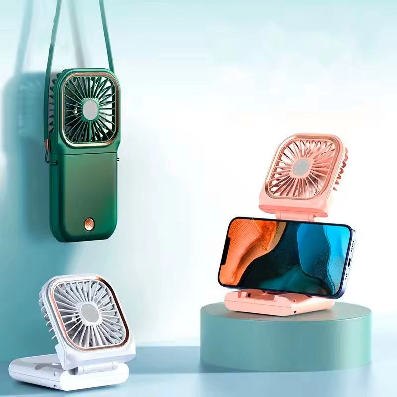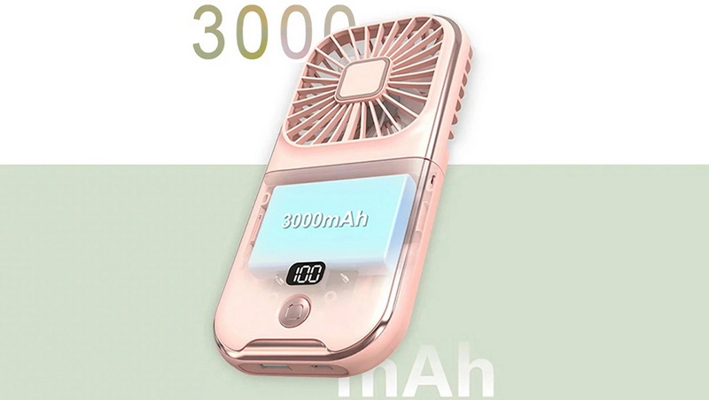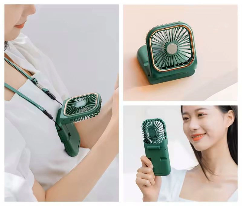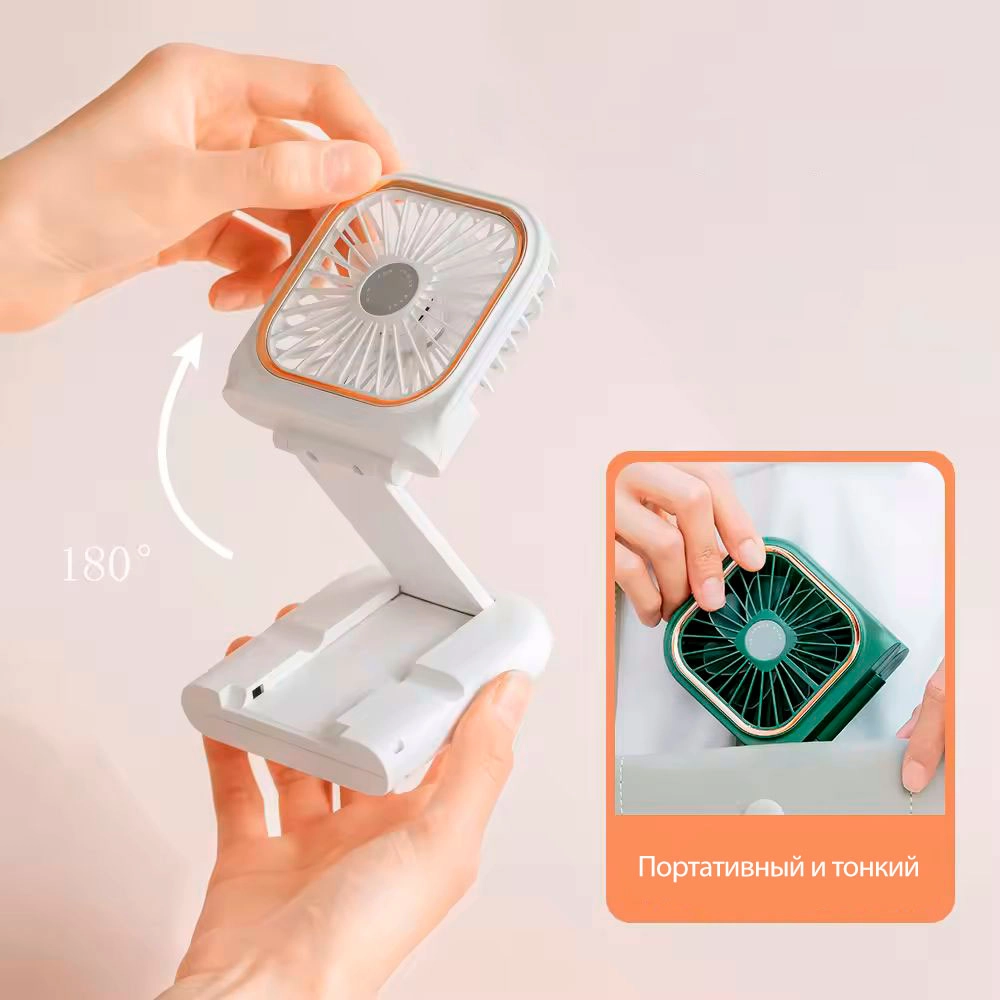 Портативный вентилятор можно носить на шее, использовать в качестве ручного или настольного вентилятора.