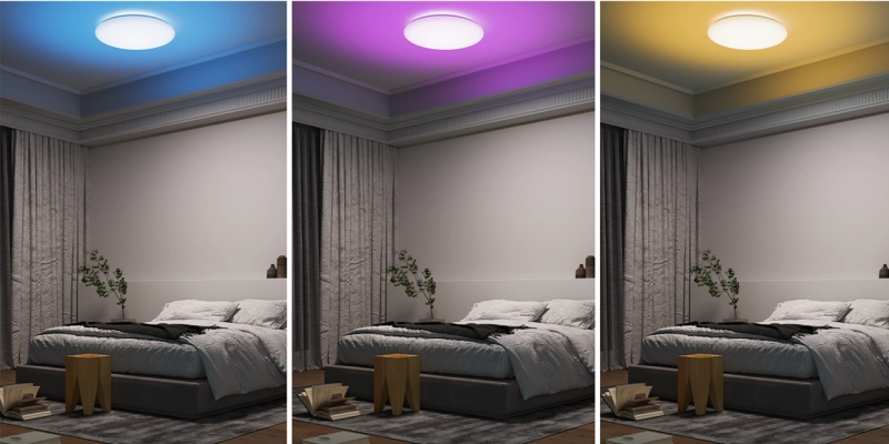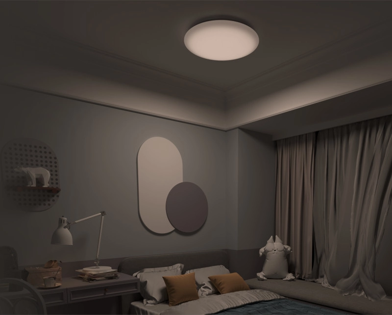 Потолочная лампа Yeelight может работать в режиме ночника, приглушенный лунный свет не потревожит сон, но позволит различить предметы обстановки.