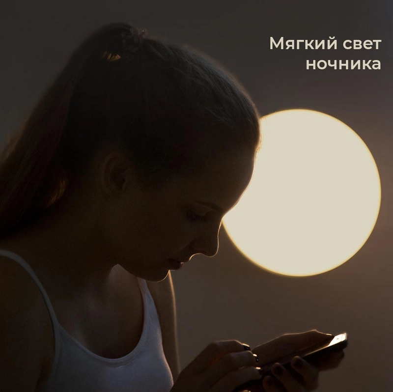 При минимальных настройках теплоты и яркости светильник работает в режиме ночника — мягкое свечение имитирует лунный свет и облегает засыпание.