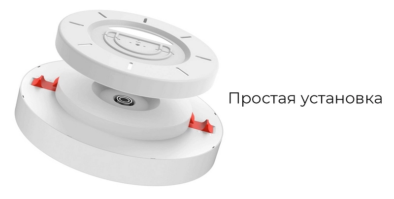 Светильник крепится к основанию двумя защелками, что значительно упрощает его установку и снятие.