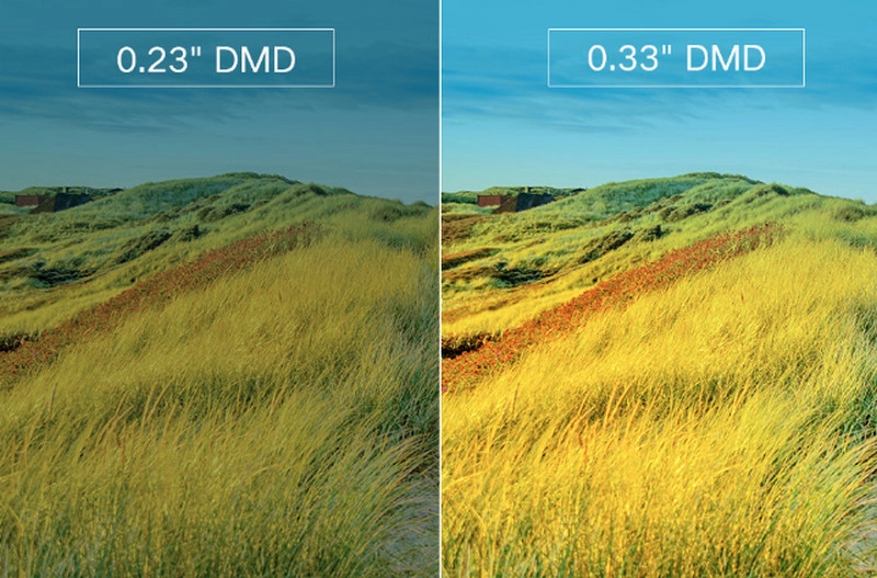 У Xiaomi MIJIA Projector 2 внутри DMD чип размером 0,33 дюйма, а не 0,23 дюйма, как в большинстве проекторов этой ценовой категории. Проектор выводит более яркое изображение с насыщенными цветами.