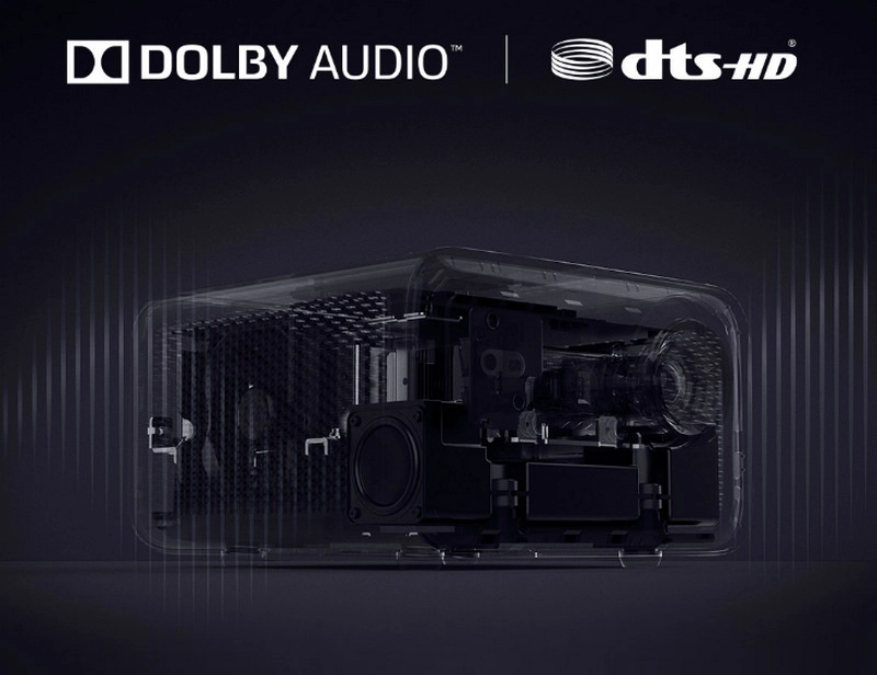 Проектор оснащен двумя динамиками размером 1,75" мощностью 10 Вт каждый. Проектор поддерживает стандарты Dolby Audio и DTS-HD.