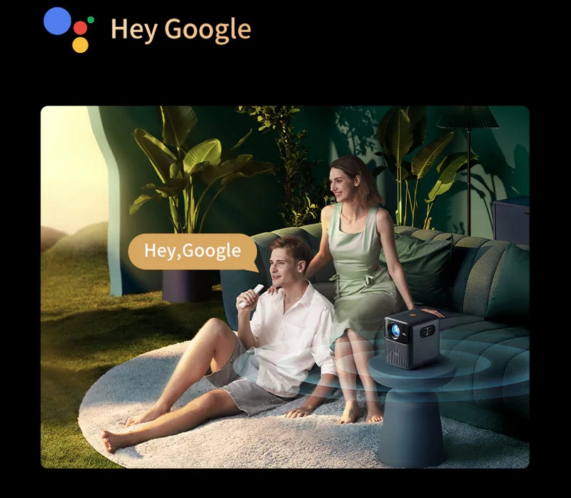 Голосовой помощник Google позволяет быстро найти нужную информацию и управлять проектором.