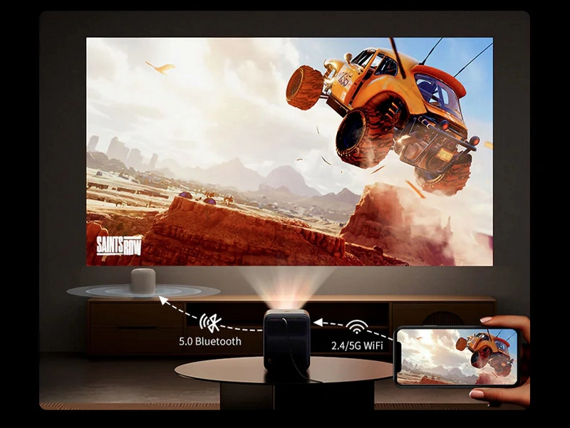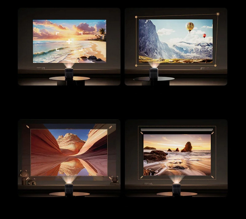 Wanbo Mozart 1 Pro автоматически фокусируется и корректирует трапецеидальные искажения изображения.