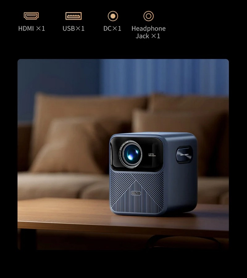 Среди физических интерфейсов у Wanbo Mozart 1 Pro присутствуют HDMI, USB, выход на наушники и вход для кабеля питания.