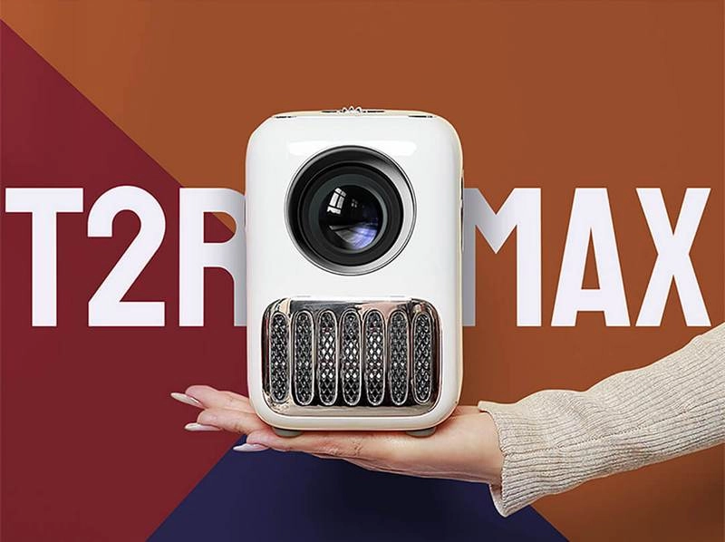 Проектор Wanbo Projector T2R Max — миниатюрный беспроводной проектор, который можно брать с собой в путешествия и переносить из комнаты в комнату. У проектора есть встроенные колонки суммарной мощностью 6 Вт и регулируемый размер проекции от 40 до 120 дюймов.