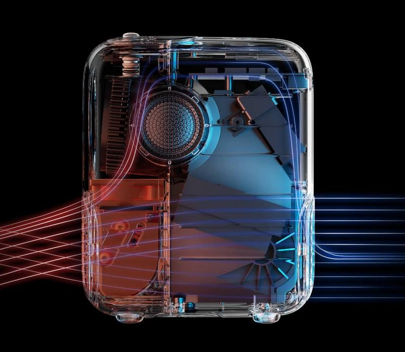 Два вентилятора и перфорация корпуса помогают проектору эффективно отводить тепло от лампы и не допускать перегрева устройства.