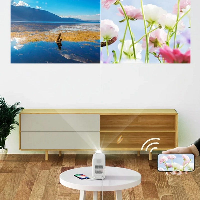 К проектору можно подключить смартфон через Bluetooth и использовать проектор в качестве колонки или же напрямую транслировать экран смартфона на большой экран.