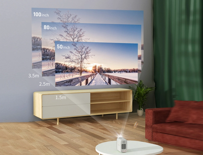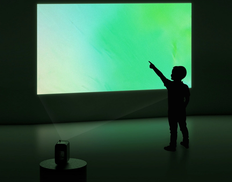 ZEEMR M1 Pro может улучшать качество изображение в автоматическом режиме. Технология искусственного интеллекта распознает светлые стены и подстраивает изображение добавляя яркость и контрастность при увеличении проекции.