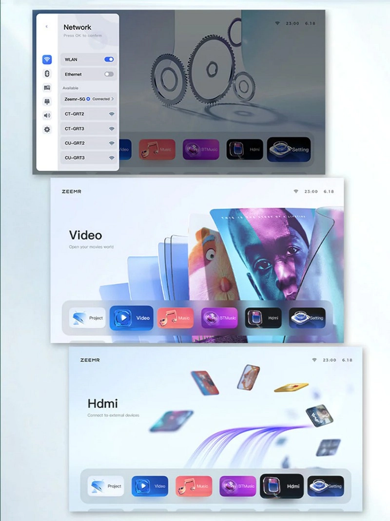 Проектор ZEEMR Z1 Mini (Global version) — оптимальное сочетание характеристик и цены. Физическое разрешение 1080р c декодировкой 4K и поддержкой HDR. Яркость 600 ANSI, размер проекции до 120 дюймов. Проектор поддерживает автоматическую коррекцию трапецеидальных искажений и выравнивание изображения.