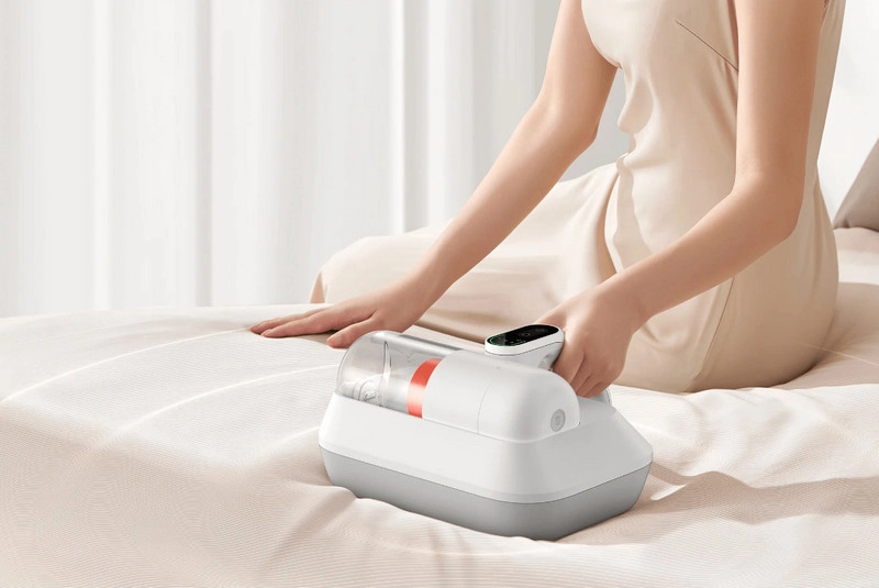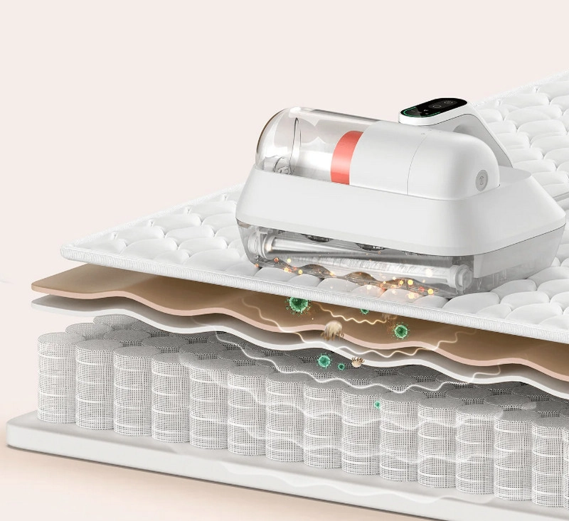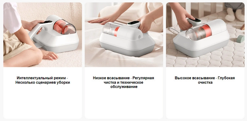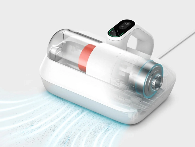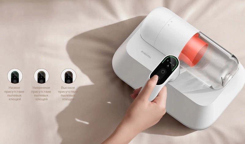 Пылесос Xiaomi работает с 6 уровнями удаления клещей. Вибрирует, чтобы выбить пыль, собирает ее мягкой роликовой щеткой, моментально всасывает внутрь, дополнительно проводит обработку ультразвуком и обеззараживает ультрафиолетом. А финальным аккордом становится сушка горячим воздухом.