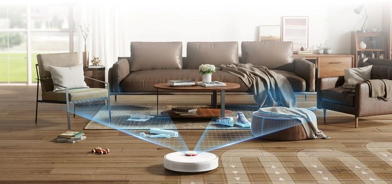 LiDAR робота-пылесоса позволяет ему определять не только препятствия перед ним, но и высоту предметов, под которыми он проходит. Умная навигация сканирует окружающее пространство и выстраивает оптимальный маршрут.