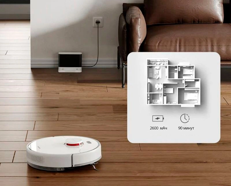 Dreame C9 получил встроенный аккумулятор емкостью 2600 мАч, он позволяет роботу убирать на протяжении 90 минут без подзарядки. Если батарея сядет в процессе уборки, то робот вернется на базу, а после зарядки продолжит с того места, на котором остановился.