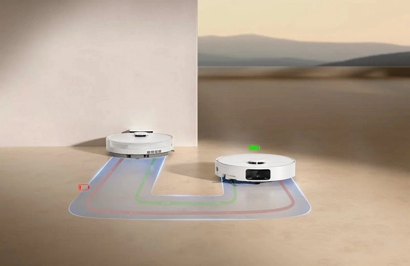 Робот оснащён аккумулятором на 5200 мА·ч, обеспечивающим до 285 минут непрерывной работы. При снижении заряда устройство автоматически возвращается на станцию, заряжается и продолжает уборку с того же места.