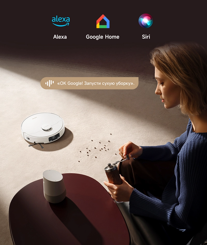 Совместимость с голосовыми помощниками позволяет запускать и останавливать уборку простыми фразами. Всё, что нужно — это команда, и робот сразу приступает к работе. Высокотехнологичная чистота в вашем доме — без усилий.