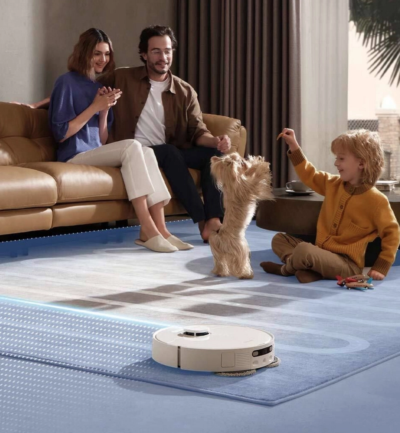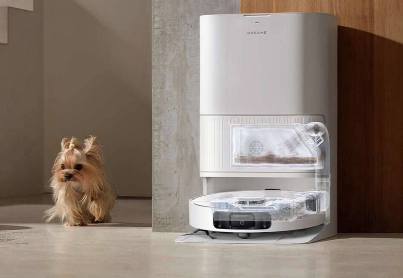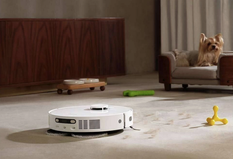 Робот-пылесос Dreame D20 Ultra эффективно собирает шерсть животных и автоматически обходит зоны, где находятся питомцы, а регулируемый уровень влажности при мытье пола обеспечивает безопасность и комфорт домашних любимцев.