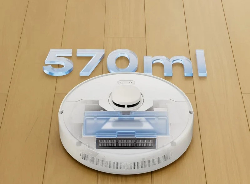 В резервуар для влажной уборки помещается стакан воды. В настройках приложения можно выбрать степень увлажнения салфетки — доступно три уровня влажности.