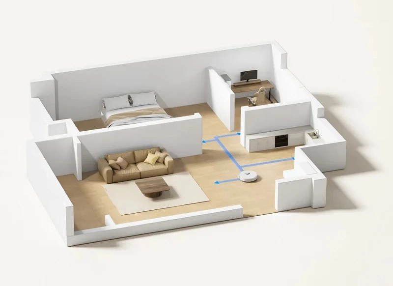 При первом запуске робот-пылесос сканирует окружающее пространство и заносит все объекты на карту, которую можно редактировать впоследствии.