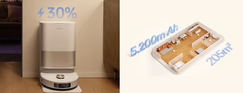 Встроенный аккумулятор емкостью 5200 мАч убирает до 205 кв.м. на одном заряде, а заряжается на 30% быстрее L10s Ultra.