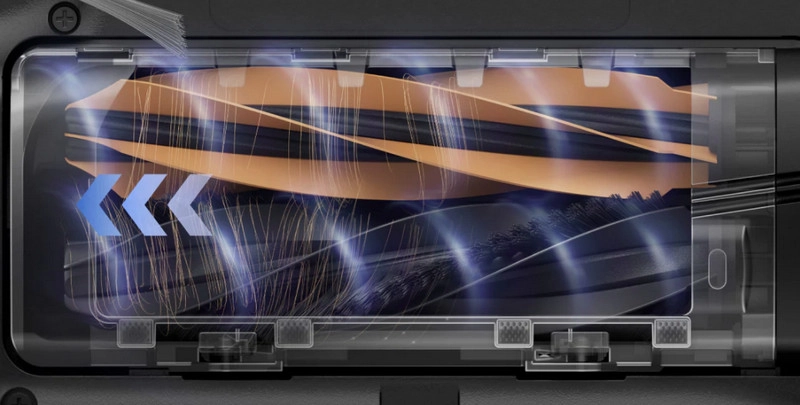 Уникальная система HyperStream Detangling DuoBrush сочетает две специально разработанные щётки — резиновую и с жёсткой щетиной, которые работают вместе, чтобы эффективно очищать ковры и твёрдые полы, не оставляя ни пыли, ни спутанных волос. Благодаря особой конструкции и аэродинамическому потоку, волосы и шерсть направляются прямо в пылесборник, предотвращая их наматывание и снижая необходимость в обслуживании щёток.