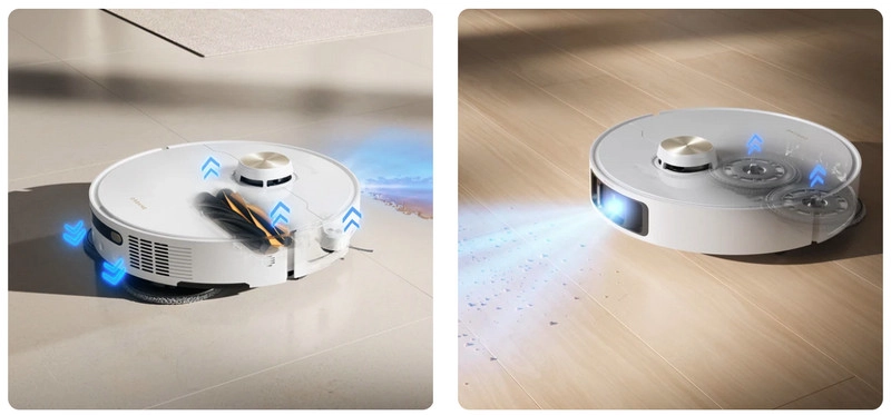 Пылесос с мощностью всасывания 19 000 Па, умной навигацией, функциями автоматической мойки и сушки, объездом ковров, подачей моющего средства, пополнением воды и картированием до 4 этажей обеспечивает комплексную уборку без вмешательства пользователя.