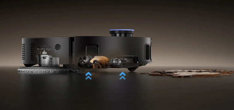 Запатентованная система TripleUp позволяет Dreame Matrix10 Ultra по отдельности регулировать боковую щеточку, основную щетку и швабру, чтобы оптимально собирать сухой и влажный мусор. При уборке робот поднимает или опускает нужные элементы в зависимости от типа загрязнения, обеспечивая чистоту на всех покрытиях и избегая смешивания мокрой и сухой уборки.
