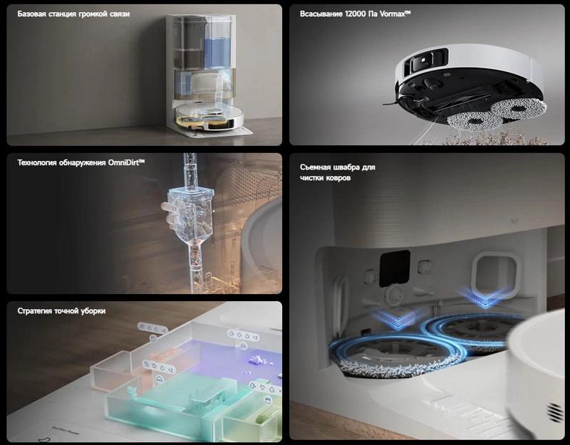 Встроенная камера с поддержкой искусственного интеллекта позволяет пылесосу распознавать тип загрязнений на полу и автоматически подбирать оптимальную стратегию уборки.
